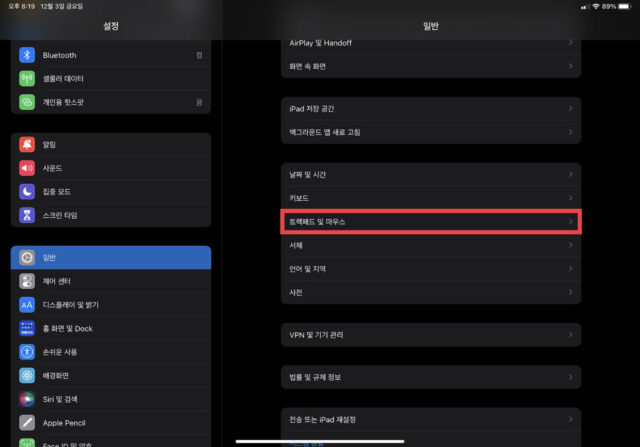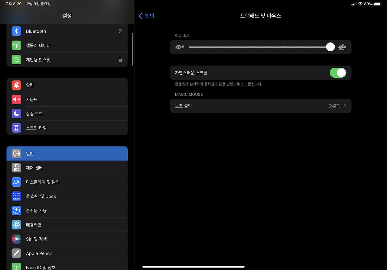 아이패드 매직마우스 설정 메뉴