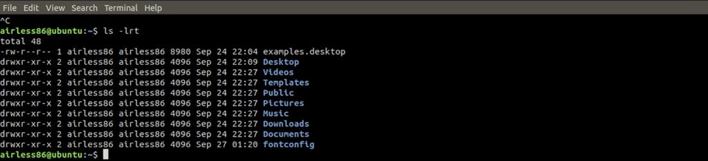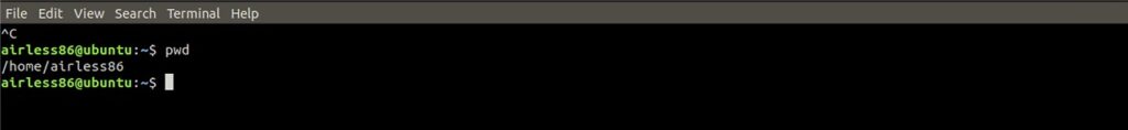 위와 같이 pwd로 조회 시 현재 내가 위치한 디렉터리 주소를 알려준다. 위치한 것으로 확인된다. airless86이라는 경로는 사용자 디렉터리로 각각 만든 계정 이름을 따라 생성되기 때문에 각자 본인의 로그인 계정으로 경로가 나올 것이다.