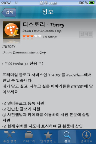 아이팟으로 쓰는 앱스토어 티스토리 어플 리뷰