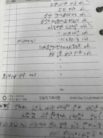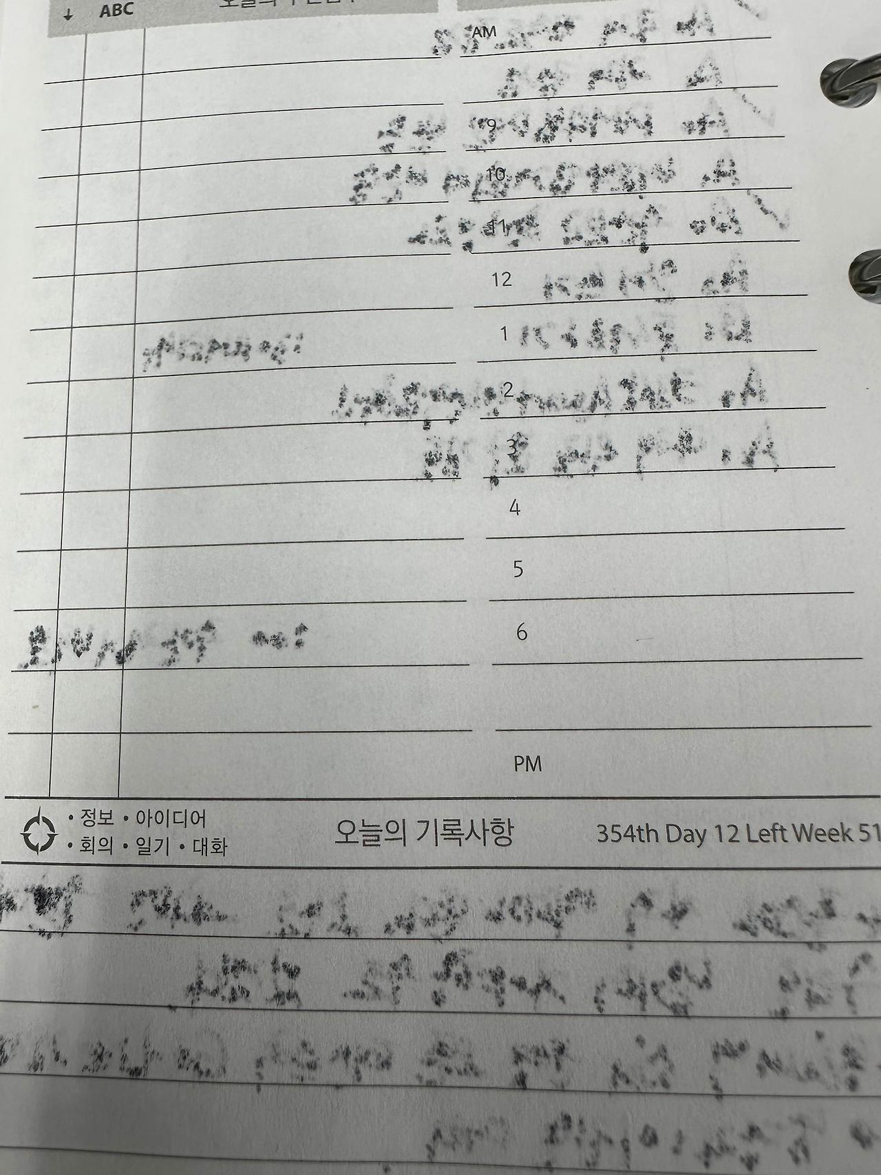 가장 큰 문제로 앞면을 쓰고 뒷 페이지로 넘기면 위 사진처럼 비친다. 필자는 그냥 무시하고 쓰는 중이다. 어쩔 수 없다. 프랭클린 플래너에서 종이를 조금 더 두꺼운 종이로 바꿔주지 않는 이상 이게 한계다.
