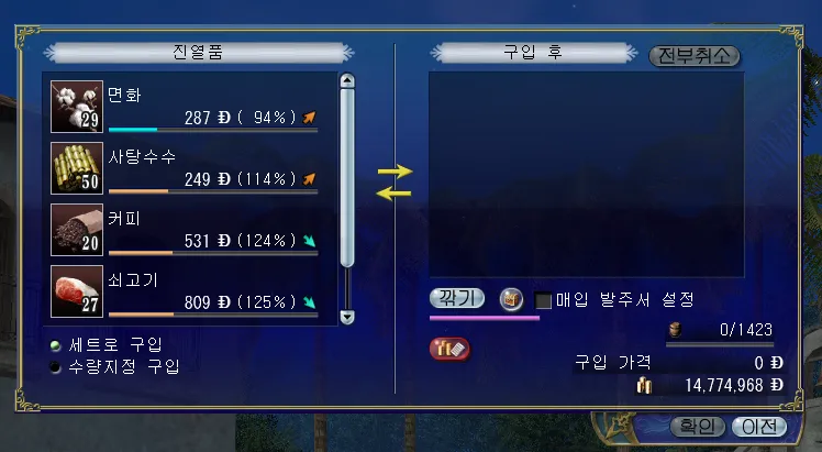 현장 네고는 되지 않기에 30만 두캇을 내고 항해기술을 배우고 난 뒤 그래도 혹시 교역소에 쓸만한 교역품이 있나 한 번 살펴 본다.