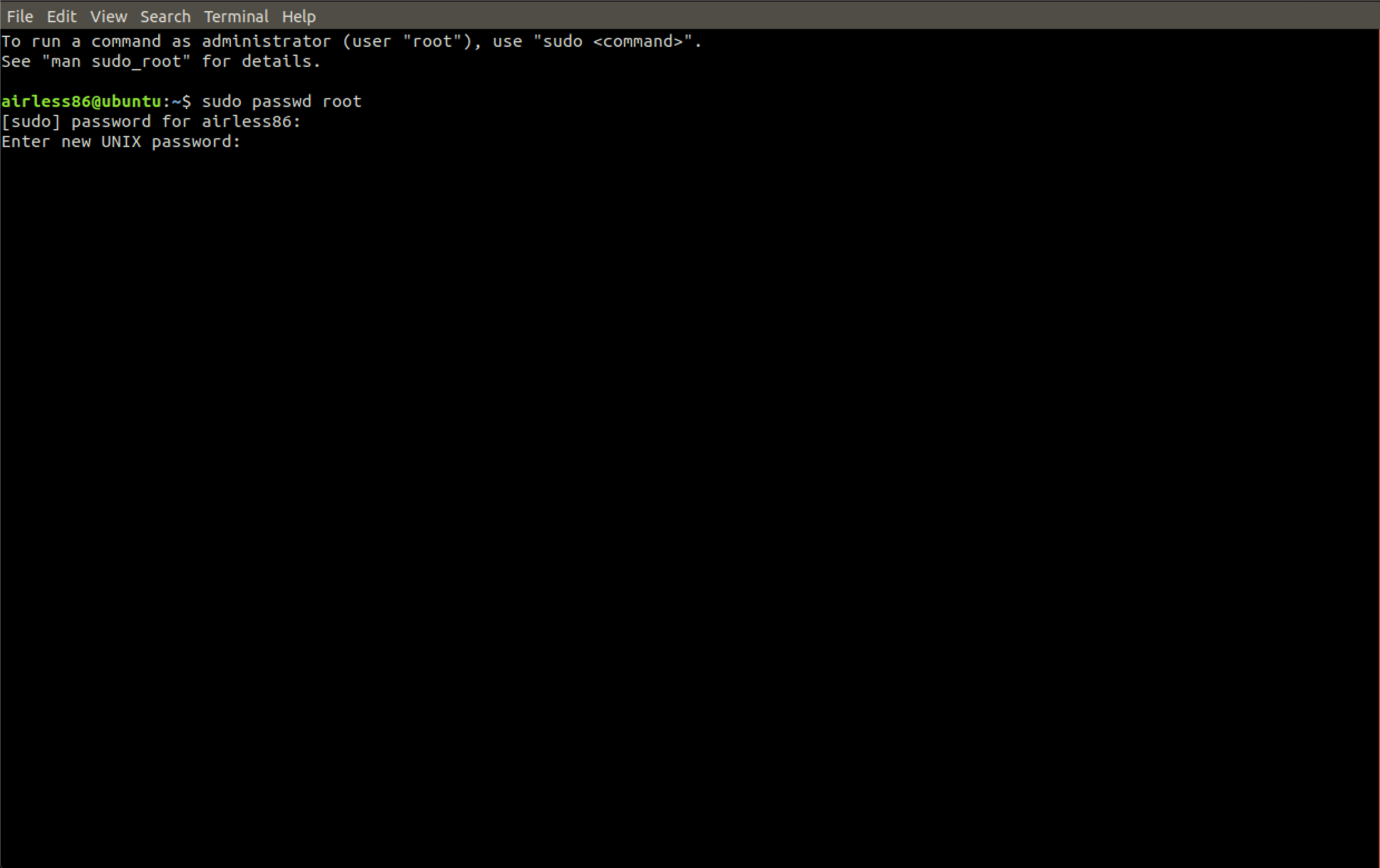 명령어: sudo passwd root