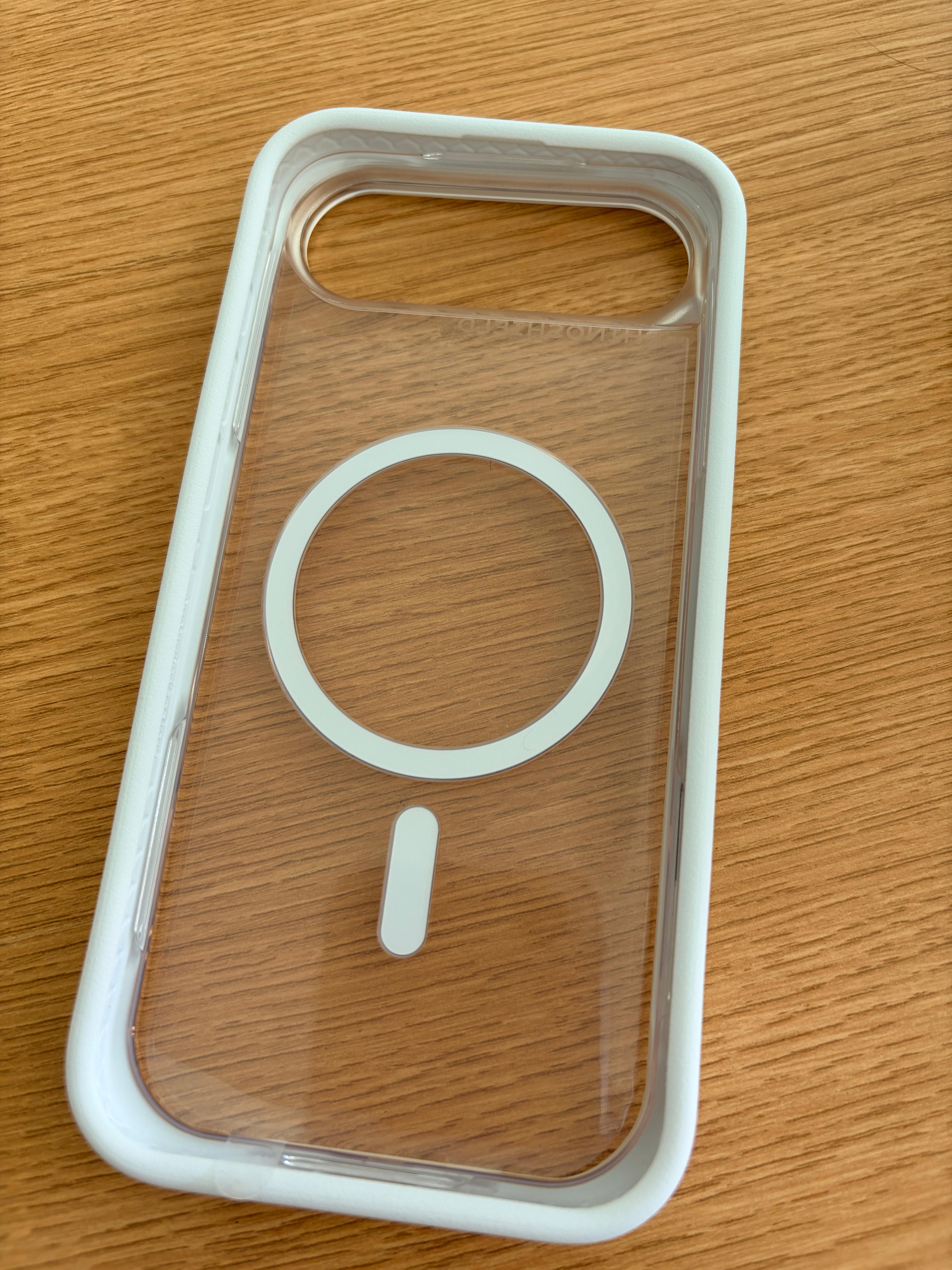 추가로 기능적인 면을 봤을 때 맥세이프도 잘 됩니다. 혹시라도 맥세이프 자성이 강하면 범퍼만 잡고 맥세이프 기기에서 제거했을 때 뒤판이 범퍼에서 분리되는 경우가 발생하지 않을까 생각했는데 기우였습니다. 역시 그렇게 허술하게 제품을 만들리 없죠. 제 대부분의 주변 기기들은 맥세이프로 구성되어 있는데 지금까지 뒤판이 범퍼에서 분리된 경우는 없었습니다. 마음 편하게 맥세이프에 붙였다 뗬다 하시면 될 것 가습니다. 그리고 무엇보다 맥세이프가 붙어 있는 뒤판도 투명한 것이 깔끔하고 이쁩니다. 본래 투명 케이스를 좋아하는 터라 이 뒤판에 더 마음이 가는 것인지도 모르겠습니다.