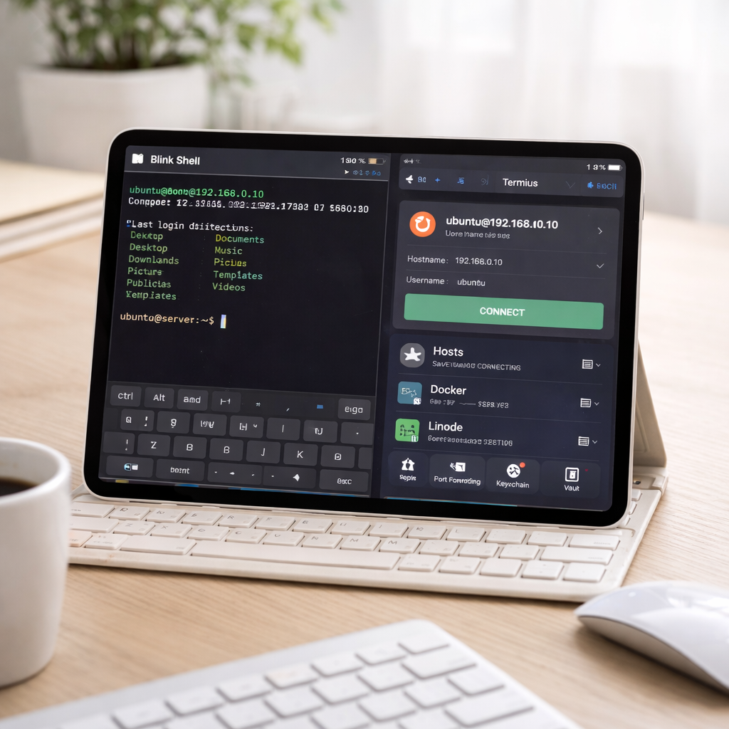 아이패드에서도 Blink Shell이나 Termius 앱을 이용하면 SSH 접속을 쉽게 사용할 수 있다.